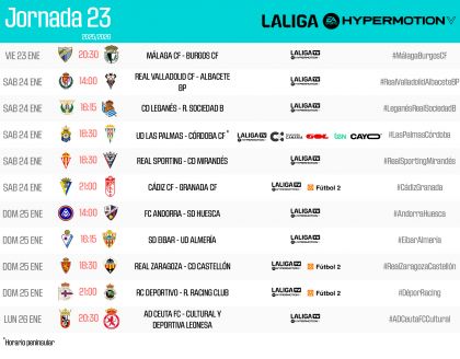 الجدول الزمني لليوم الرابع والعشرين من بطولة لاليجا هايبرموشن 2025/26